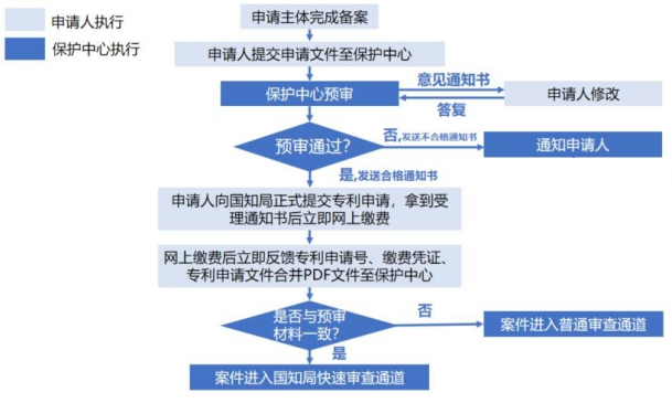 (3)预审的专利申请符合保护中心的领域要求。保护中心对专利涉及技术领域、专利形式缺陷和实质缺陷问题进行审查,预审合格后即可向国家知识产权局提交专利预审案件。